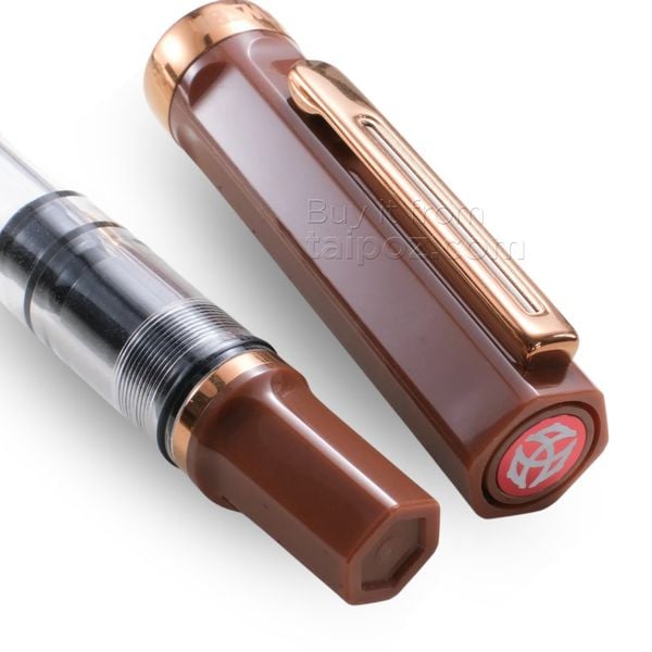 • Cây bút lý tưởng của mọi tín đồ yêu cà phê. Sở hữu màu nâu sẫm, mang đến vẻ đẹp như hạt cà phê rang xay, trong khi các chi tiết kim loại viền và ngòi được mà màu đồng, tạo nên lớp phủ hoàn hảo như lớp bọt "crema".