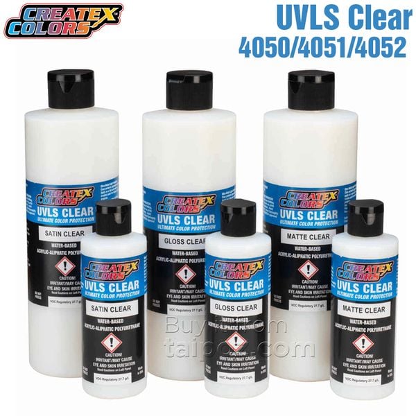 | • UVLS gốc nước, làm từ nhựa aliphatic polyurethane là chất có độ bám dính bề mặt rất vững chắc. UVLS viết tắt của Ultra-Violet Light Stabilizer, là chất phủ bảo vệ chống tia UV gây ra tình trạng phai và bạc màu sơn. Createx UVLS Clear được thiết kế để dùng cho cả trong nhà và ngoài trời. Nó đặc biệt hữu ích khi phủ lớp trên cùng màu Candy2O hoặc các loại thuốc nhuộm khác. • Đôi khi UVLS cũng được dùng như lớp nền bám cho các bề mặt khó ăn màu như kim loại, nhựa... trước khi vẽ màu lên. • Được khuyến nghị sử dụng với tất cả các dòng màu vẽ, màu airbrush của Createx. • Sản xuất tại Mỹ. |