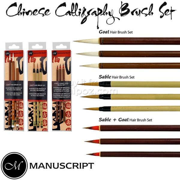 | • Carefully crafted to ensure the best in quality, Manuscript’s range of authentic Chinese Calligraphy brushes meet all of the four criteria a calligrapher would look for in a Chinese brush... sharpness, evenness, resilience and roundness of the brush tip. • For writing Chineses calligraphy and watercolor drawing. • Made in China