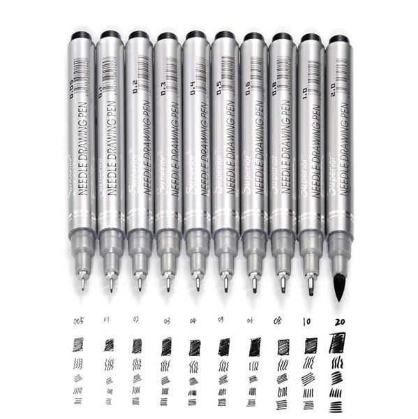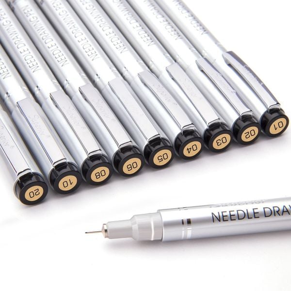 | • A student grade liner marker with a variety of stroke sizes. Suitable for students to practice drawing, architects, illustrators... • Needle pen, specialized for drawing lines in manga, illustrations.... • Waterproof, alcohol-proof, no bleeding, no acid. You can draw with alcohol-based markers, watercolors without smearing. • Made in China |