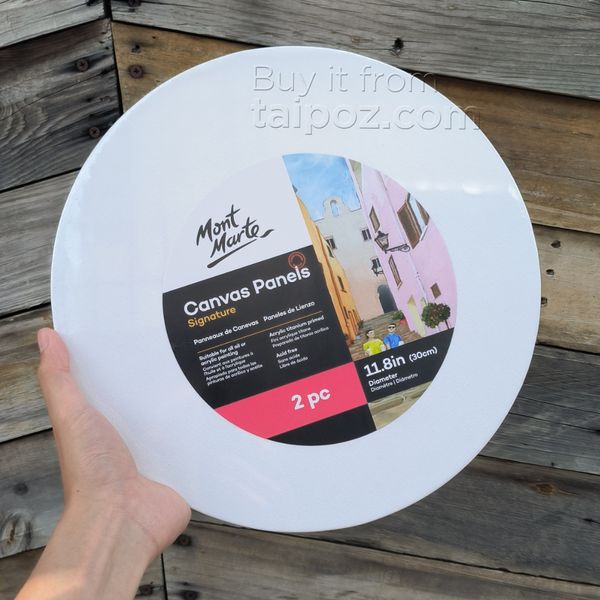 Primed canvas ready to use. Suitable for students through to professional artists, this hassle-free round canvas board features an acrylic titanium primed surface wrapped around a firm panel. The slim, yet strong, design is perfect for oil and acrylic painting. It's also easy to take to your favourite outdoor painting spots or to an from the classroom. Create unique artworks with our Signature canvas panels.