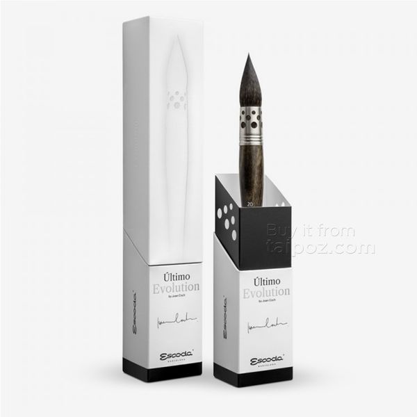 The Escoda "Evolution" brush is the culmination of a collaboration between the renowned Spanish fine art brushmake companyr and the renowned watercolor artist Joan Coch. The brush is named "Evolution" because it is the first and only product in the third generation of Escoda brush technology. The Escoda "Evolution" brush is a testament to the company's groundbreaking advancement of brushmaking technology over time. The first generation laid the foundation by inventing the machine to create the ferrule grooving, which helps distribute the brush bristles evenly and more consistently. The second generation built on that legacy by improving the triple groove process, which provides enhanced aesthetics and durability. The third generation innovated with the perforated ferrule technology, which optimizes water control and creates more vibrant painting effects.