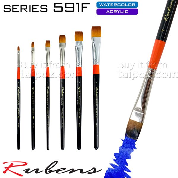 | • The bristles used for the 591F series are 2Tone-Colored artificial bristles from Japan. The bristles have both very good elasticity and adsorption power. Extremely suitable for both watercolor and acrylic painting. Recommended for beginners or students of art classes because of the durability of the brush. • Ferrule: Stainless steel. • Brush body: Wood painted black+red. • Applications: Flat or rectangular brushes have square, flexible ends and can hold a lot of paint. When used flat, they can make long strokes and are well suited to blending and painting in large areas. The tip and sides can also be used for more delicate lines and small touches. • Made in Korea
