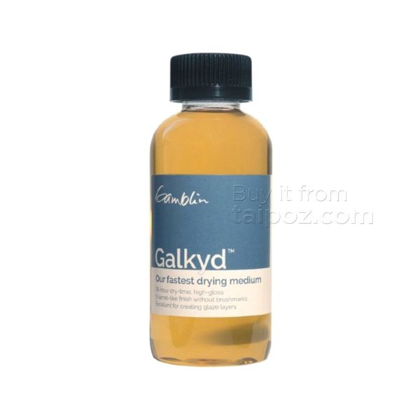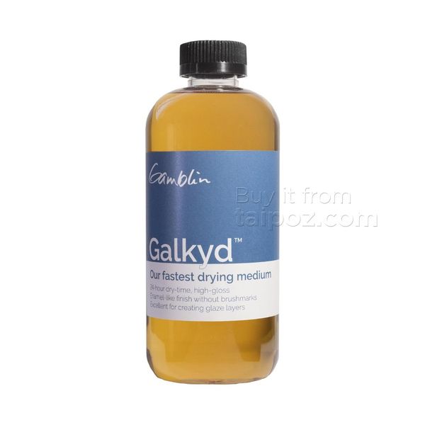 • Galkyd thins oil colors and increases transparency and gloss. When used in greater proportions with oil color, Galkyd will level brushstrokes, creating an enamel-like surface. Galkyd is our fastest-drying painting medium. Thin layers will be touch-dry in approximately 24 hours.