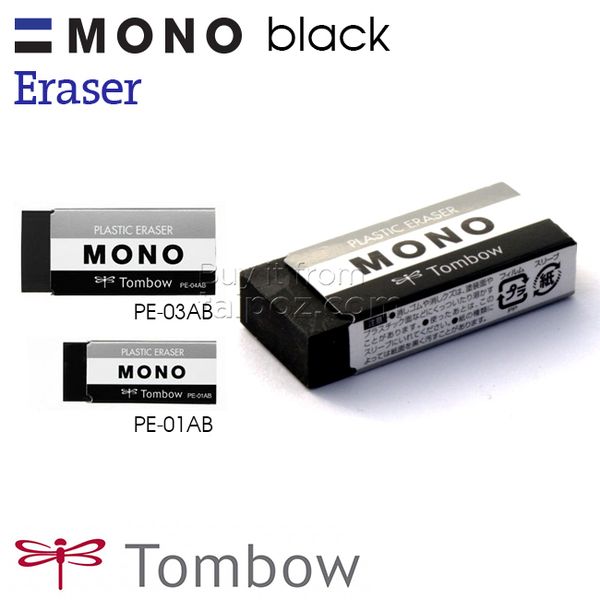 • Gôm khối chữ nhật, chất liệu cao su đen (PVC). PE-01AB: 43 x 17 x 11mm / Nặng: 11g. |