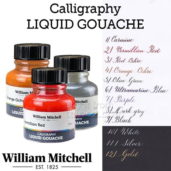 • Màu dùng làm mực viết calligraphy hoặc để vẽ design tùy theo nhu cầu. Do được pha lỏng trừ nhà sản xuất nên độ lưu hoạt của màu ổn định hơn khi bạn tự pha màu goauche với nước. |