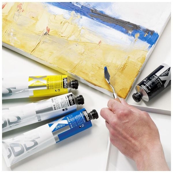 | • Studio XL Fine Oil from Pebeo is a resolutely modern artist’s oil, with 64 colours to choose from a range of bright, traditional and pastel colours, iridescent Dyna colours and glazes. • Intense and permanent, with great resistance to thermal and photo-oxidation. Viscosity is constant from one colour to another and the pigments are chosen to provide similar colours to the extra fine oils, while providing excellent value for money. • Drying: 2 to 6 days on average according to the thickness applied. It is advisable to leave the work to dry for 6 to 9 months before varnishing • Dilution: Essences, oils or mediums depending on the desired effect • Application Supports: Canvas, cardboard, wood, ... • Made in China