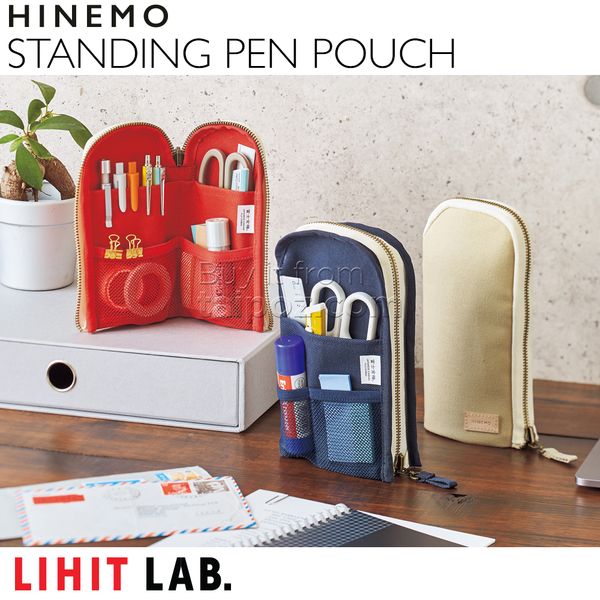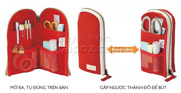 • An L-shaped pouch that stands on its own. This pen case transforms into a pen stand for your desk! Simply unzip the case, fold the halves back, and zip the case inside out. It has room for plenty of pens, as well as scissors and a compact ruler.
